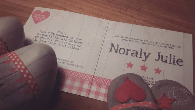 Naast de geboortegedichtjes op de linkerzijde kondigden we het kraamfeest aan, staat er bij beide meisjes dat we intens dankbaar en gelukkig zijn met hun komst. En als meest belangrijke staan de roepnamen, doopnamen en adresgegevens natuurlijk op de geboortekaartjes verwerkt.