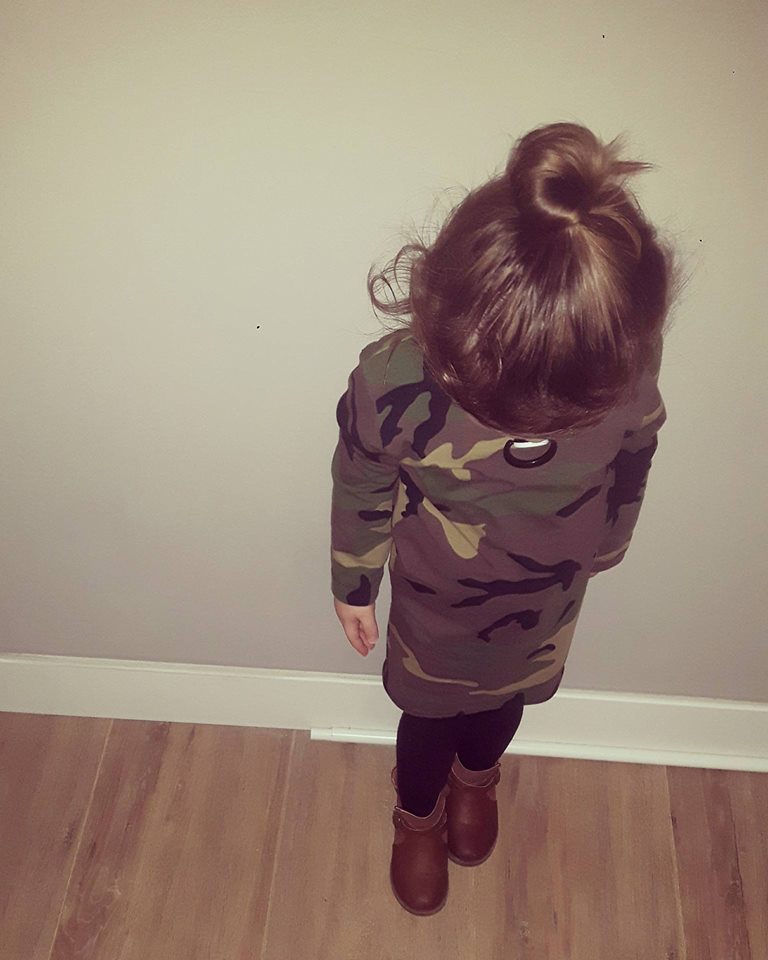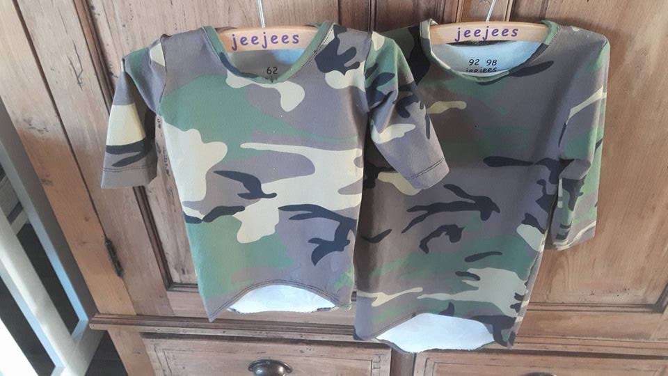 Ook voor onze jongste dochter liet ik dit camouflage jurkje in mini uitvoering maken.