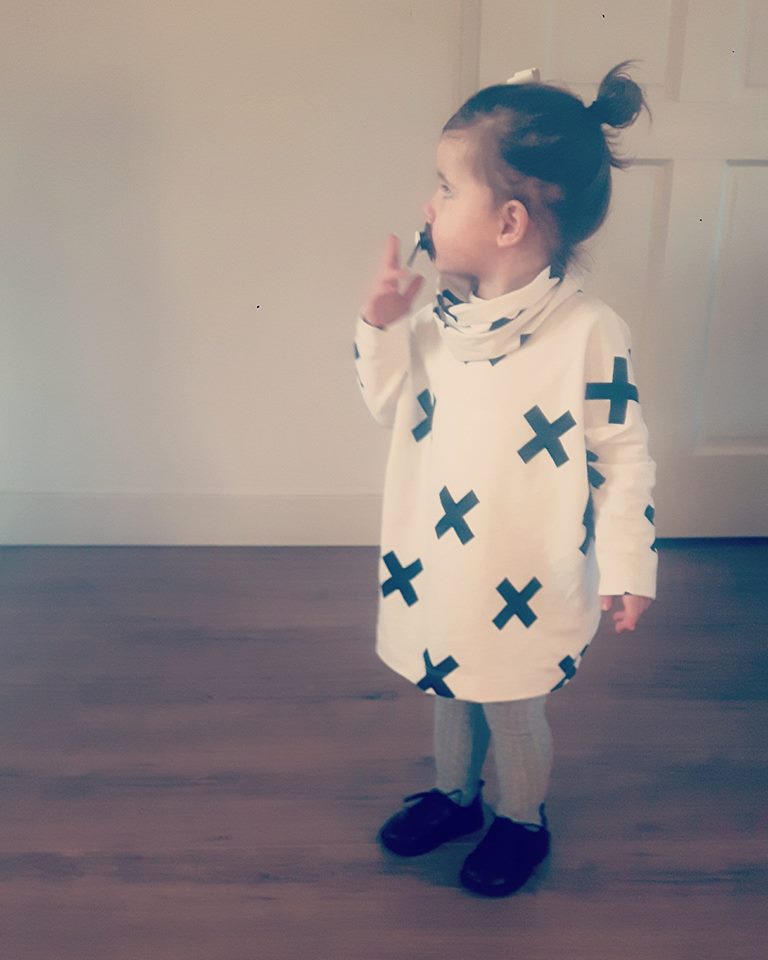 Vooruit, zo erg is het niet, want eerder al bracht ik Jenny van Jeejees op de hoogte met de wensen en ideeën voor het ontwerp van twee verschillende modellen jurkjes die ik enorm graag voor mijn meisjes wilde hebben. Enthousiast ontving ze mijn ideeën, er werden stofjes gekozen, proefjes opgestuurd. Heel iets unieks en daarbij dus ook nog eens met liefde (hand)gemaakt. We ontvingen al snel een proefmodel en niet veel later volgde het eindproduct, twee fantastisch leuke jurkjes voor mijn meisje(s). En guess what? Ze worden opgenomen in haar webshop! Vandaag tonen we de nieuwe items dan ook -een beetje samen- met trots! Per 1 Februari kan dus ook jij ze daar bestellen!