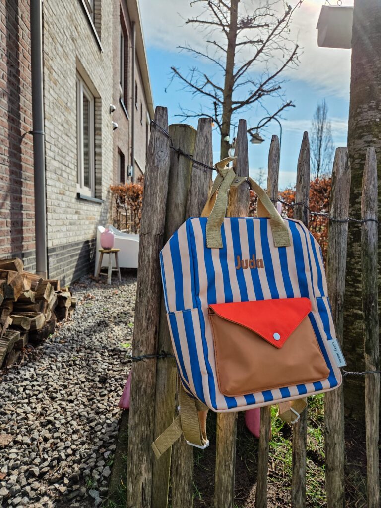 Afgelopen week scoorden we een stel nieuwe outfits voor onze stoere peuter. Wijde broeken, idem shirts. Als kers op de taart bestelden we bij HippeRugzakken.nl een bijpassende hippe jongens rugzak. Het was niet eenvoudig om een rugzak uit te kiezen, want wat is er een ontzettend leuk en groot assortiment kinderrugzakken. Onze keuze viel op een medium rugzak van Sticky Lemon met strepen en een fel gekleurd voorvak. Een medium rugzak is eigenlijk nog wel een beetje groot voor onze peuter, maar dankzij de handige borstriem kan hij de rugzak al goed zelf dragen!